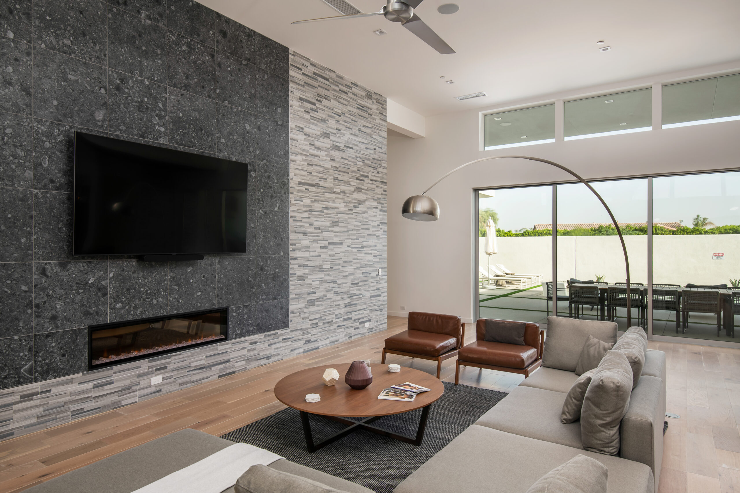 The dramatic interior spaces flow effortlessly to the spectacular outdoor living area, featuring a custom pool, ambient firepit, and professional bocce ball court. Every aspect of the property has been thoughtfully designed to facilitate both productive collaboration and memorable relaxation.