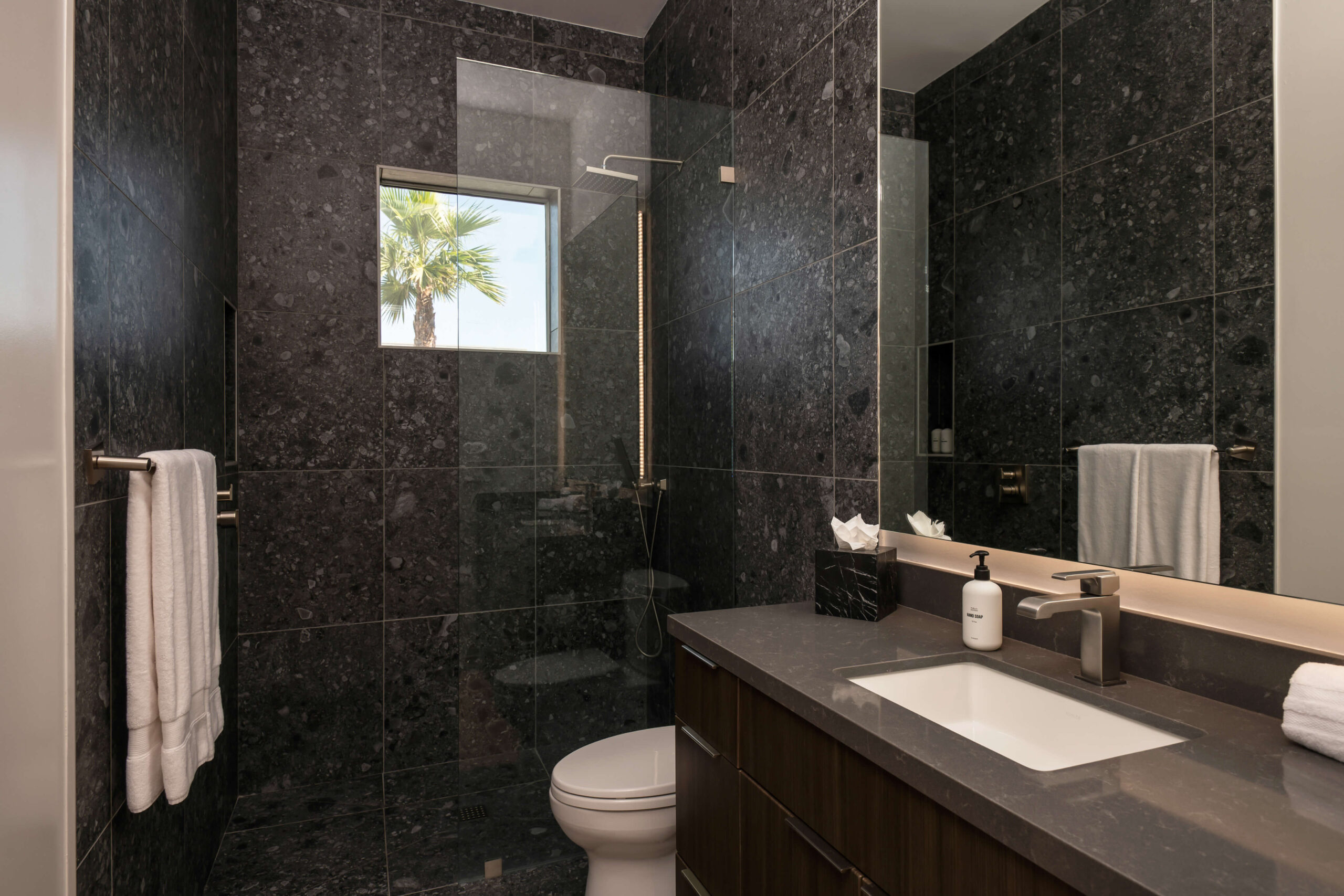 The estate’s elegant design seamlessly blends with the desert landscape, while premium finishes and thoughtful amenities ensure your group’s comfort. The spacious layout accommodates up to 18 guests with ample common areas for both gathering together and finding quiet moments apart.