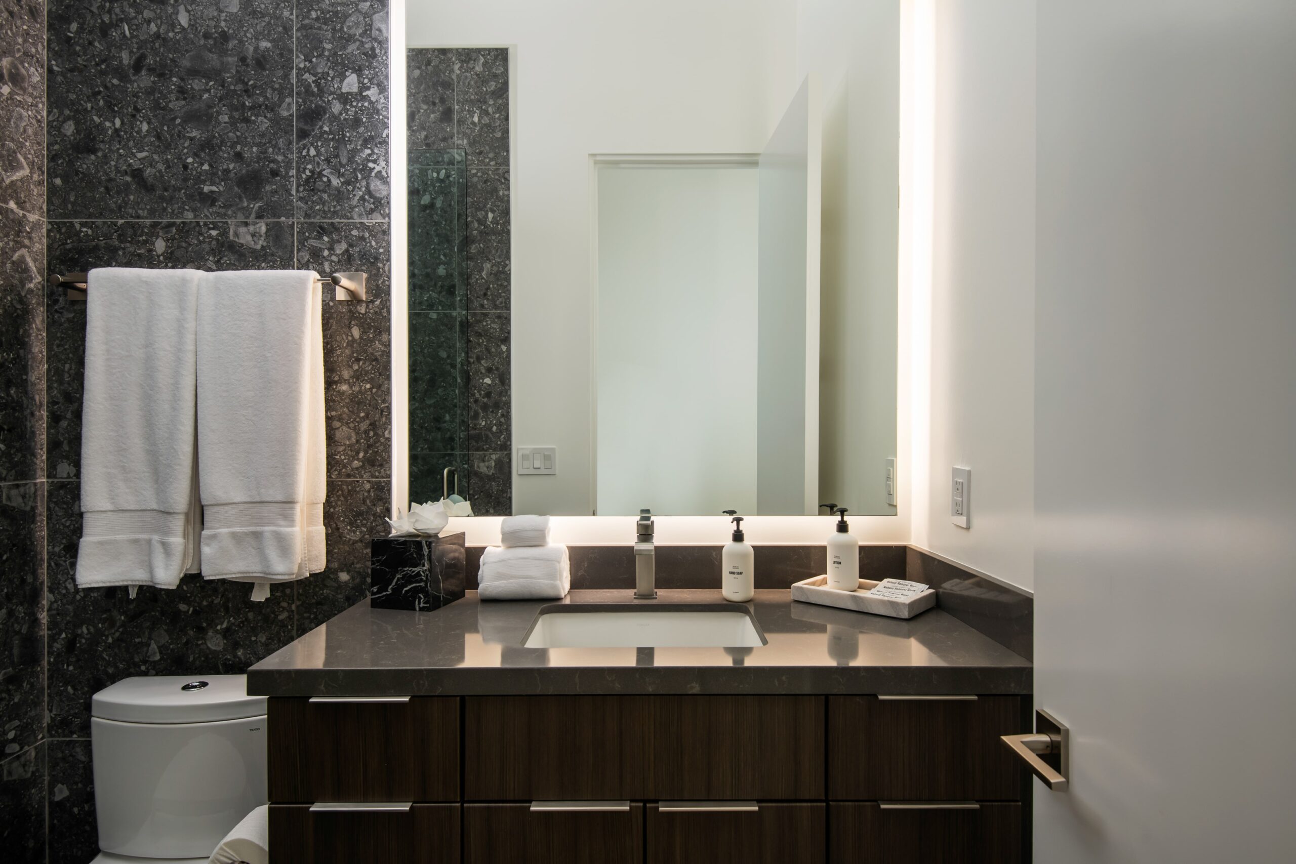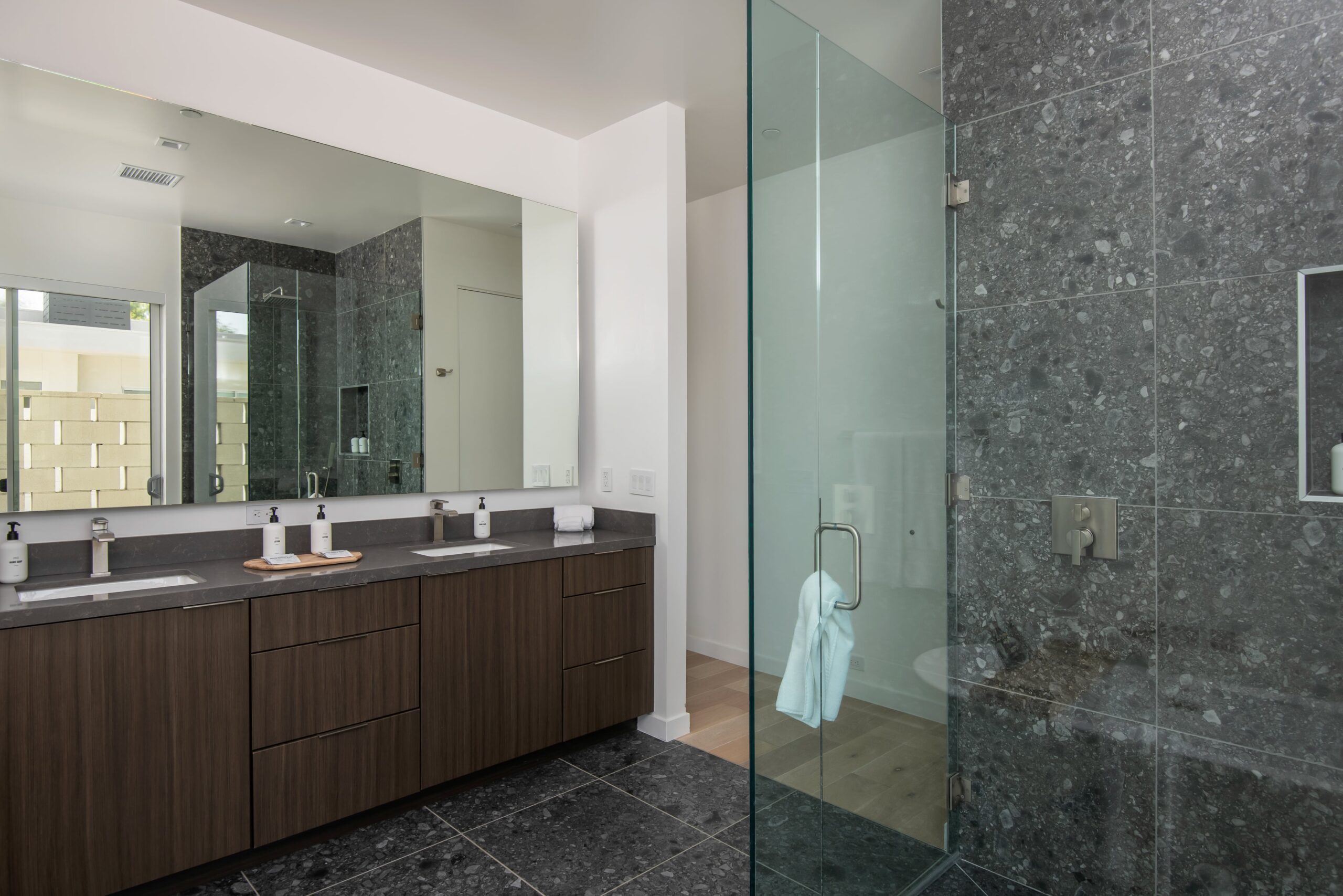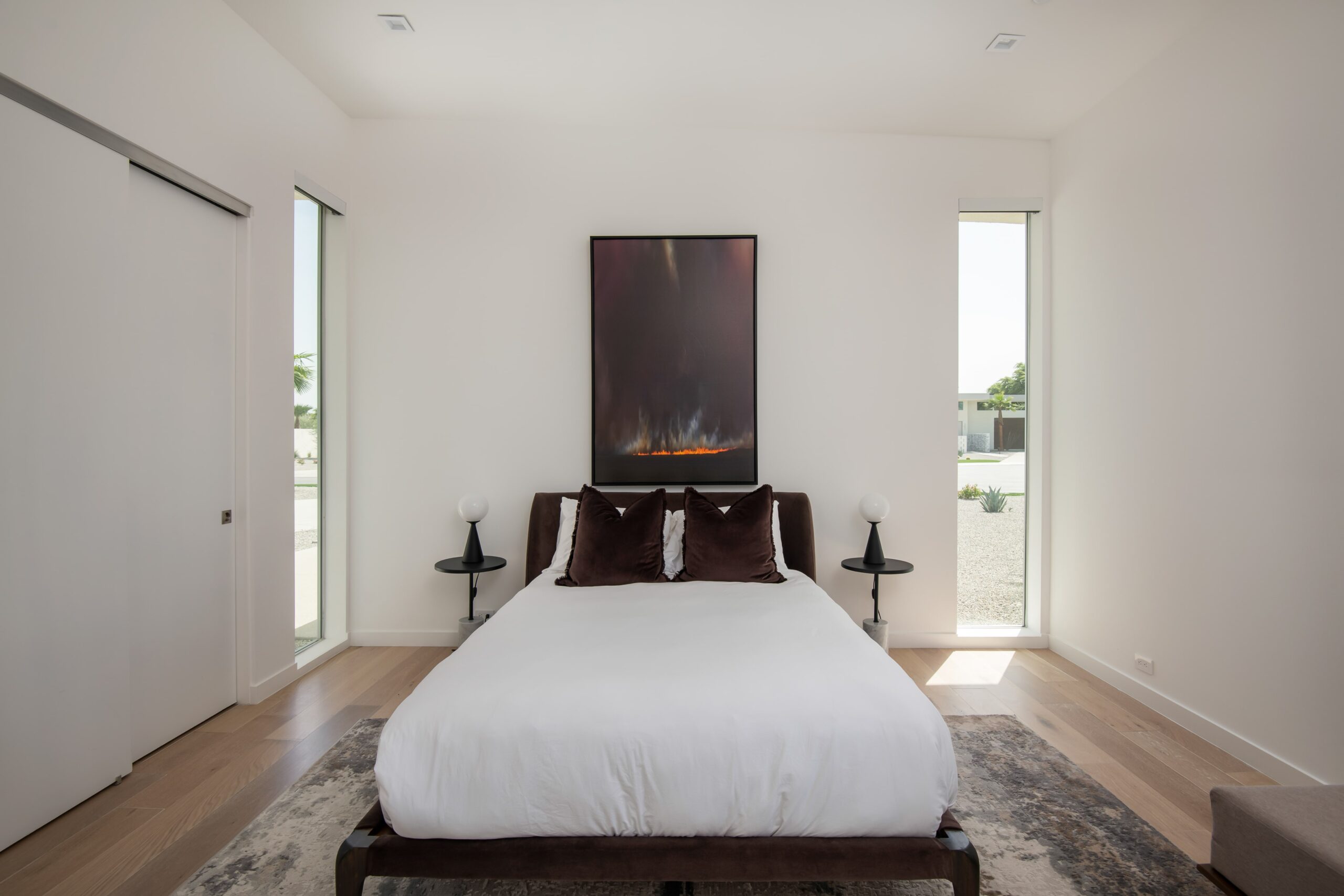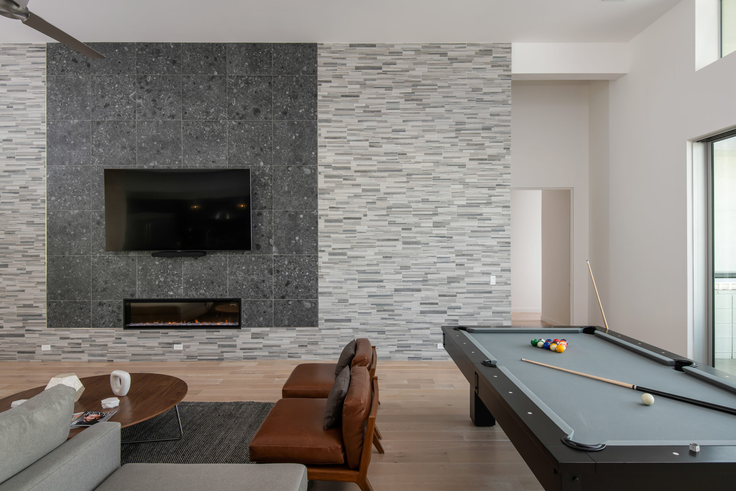 Mercury House contemporary aesthetic extends from the sophisticated interiors to the stunning outdoor entertainment area, featuring a custom pool, ambient firepit, and bocce ball court. Multiple conversation areas and dining options provide versatility for different group activities.